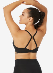 Adjustable backstrap converts to a racerback for a sportier silhouette.