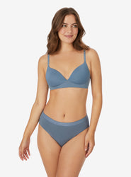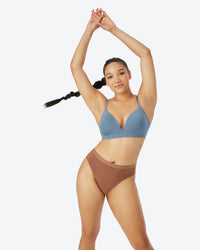All of In Common's bras and underwear are predominantly made from modal fibers, which are derived from natural materials and use significantly less energy and water than traditional cotton. Modal is not only the environmentally responsible choice, it also wicks moisture and offers exquisite softness.