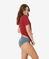 All of In Common's t-shirts and tops are made from a BCI Cotton and modal blend. BCI Cotton is is responsibly sourced and better for everyone, from the people who farm it to the people who wear it. The modal fibers are derived from natural materials and use significantly less energy and water than traditional cotton. Modal fabric is naturally breathable, anti-bacterial and results in less body odor and irritation. It's also beyond comfortable.